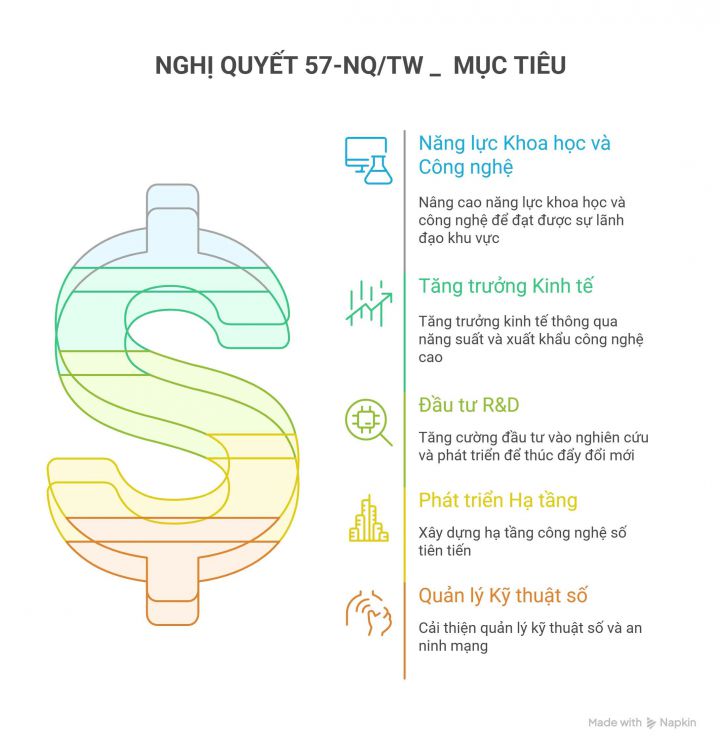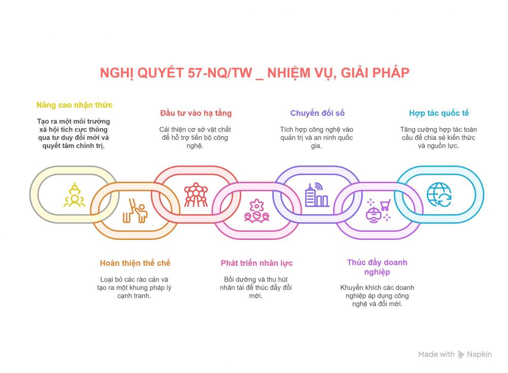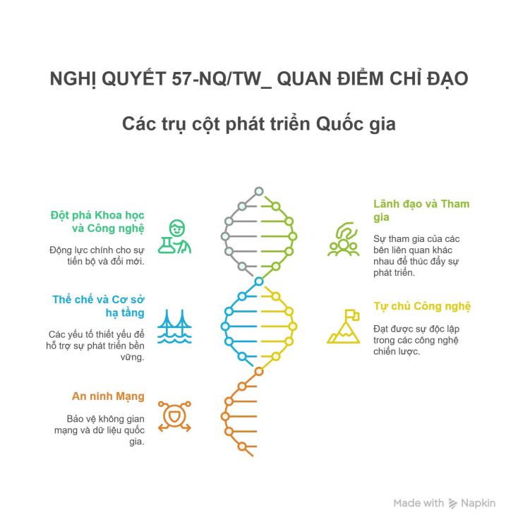 Nghị quyết 57-NQ/TW thể hiện tầm nhìn chiến lược của Đảng và Nhà nước Việt Nam trong việc phát triển khoa học - công nghệ và đổi mới sáng tạo như một trụ cột then chốt, từ đó nâng cao năng lực cạnh tranh quốc gia và đảm bảo sự phát triển bền vững trong thời kỳ cách mạng công nghiệp 4.0.